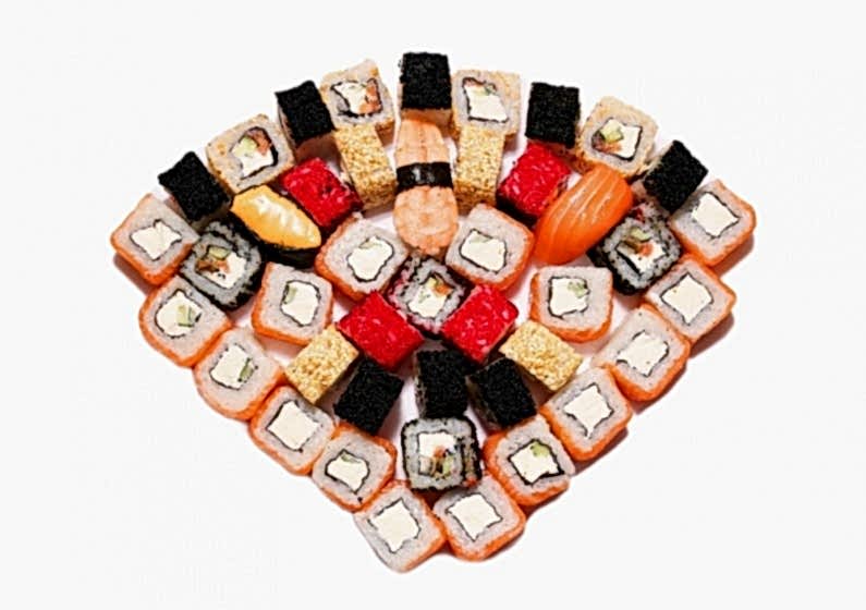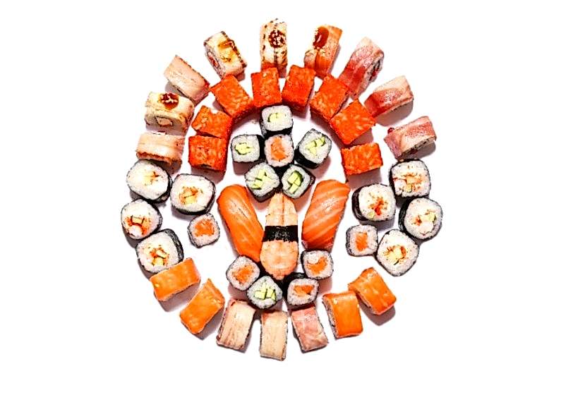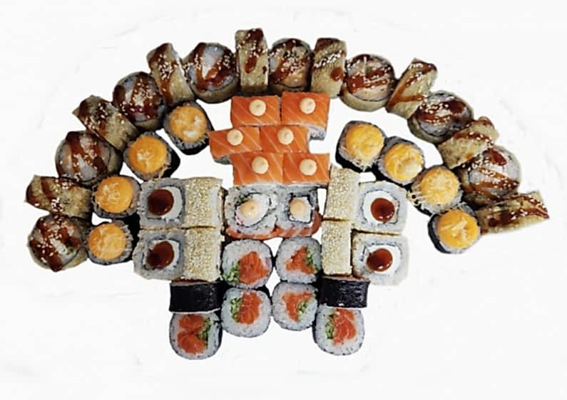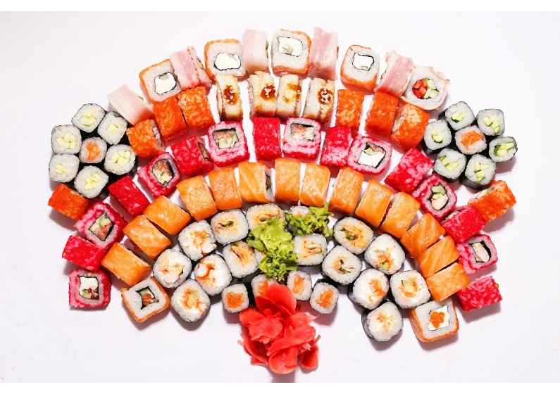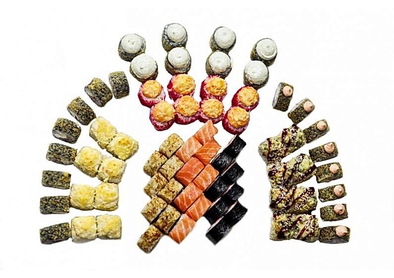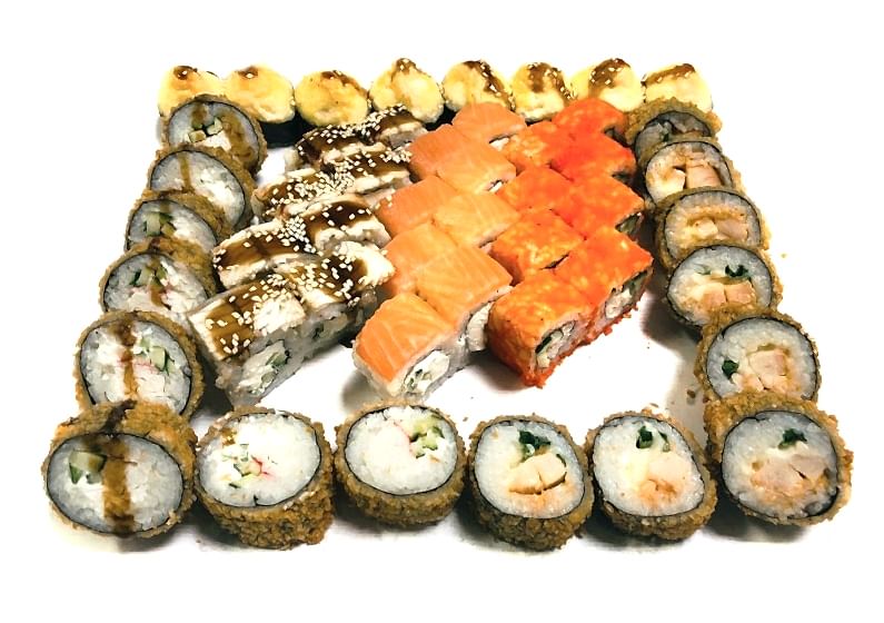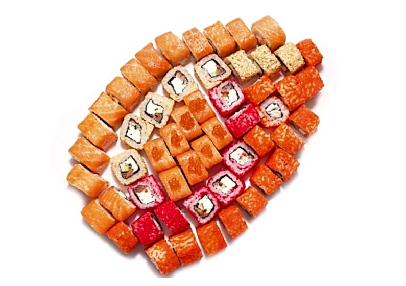 55шт. Лосось, Pin-Up Кунсей Батакон, Модза, Онигара, Калифорния Лайт, Мексика, лосось 2, креветка 1 Упаковано - на 4 персоны!!