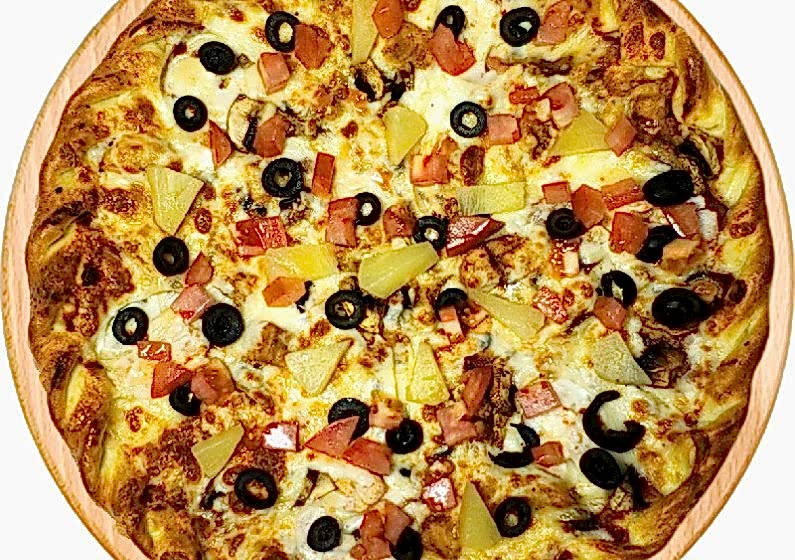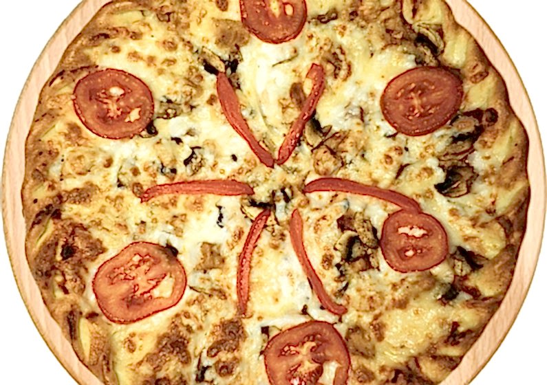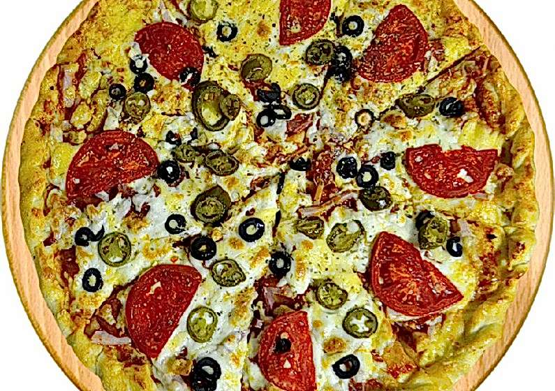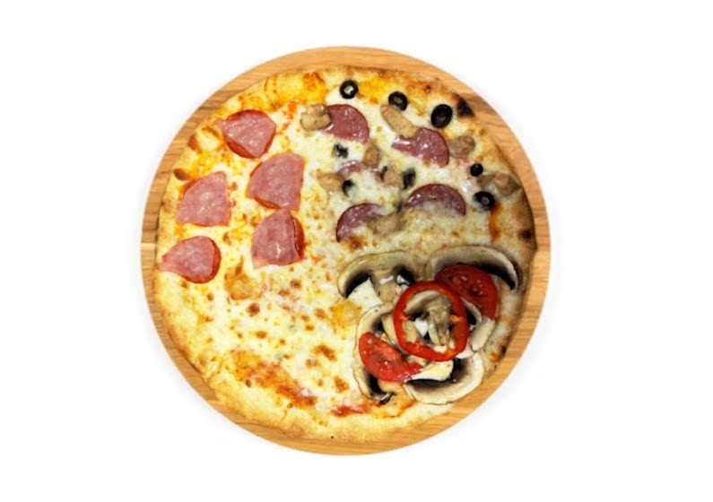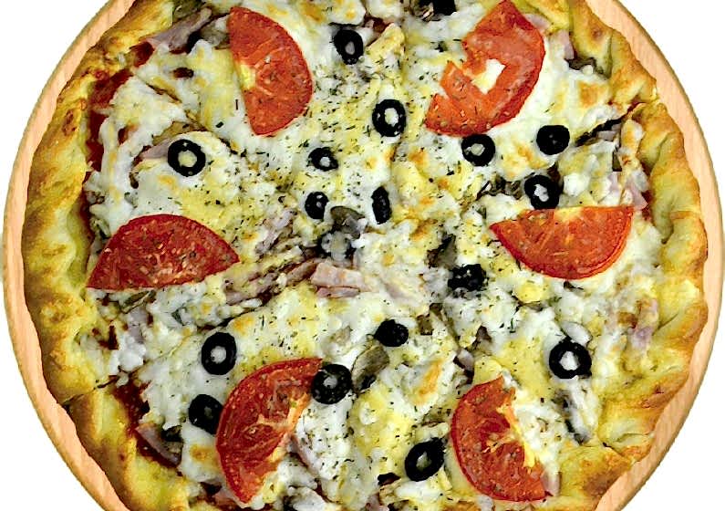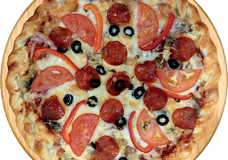 Салями, бекон, ветчина, пепперони, перец болгарский, помидор, грибы, маслины, сыр Pin-Up сыр Моцарелла