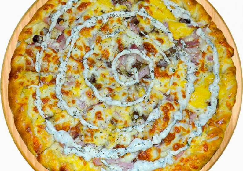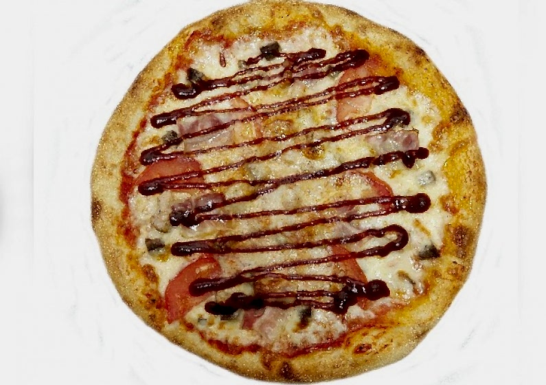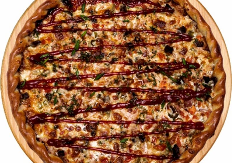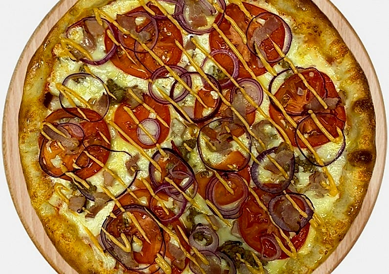 Курица, говядина, бекон, пепперони, сыр Гауда, сыр Моцарелла, соус Барбекю, соус Pin-Up