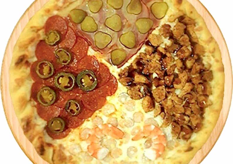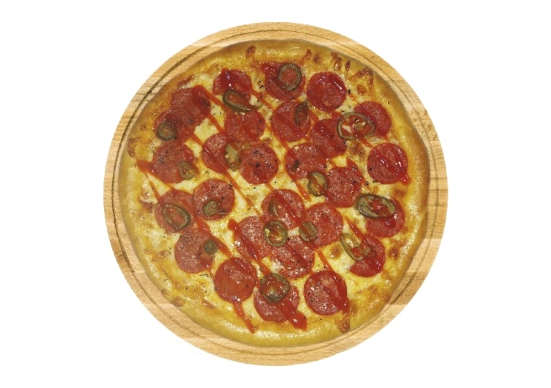 Салями, пеперони, куриное филе, ветчина, помидор, маслины, сыр Гауда, сыр Моцарелла, перец Халапеньо, Pin-Up