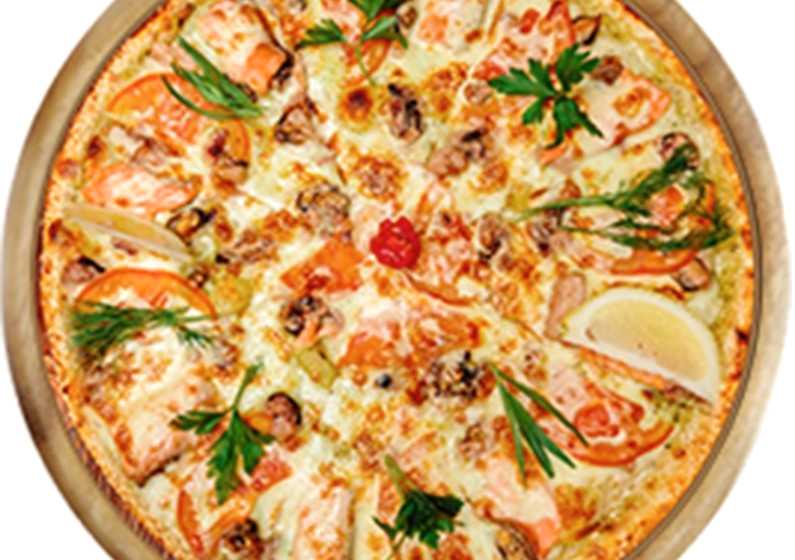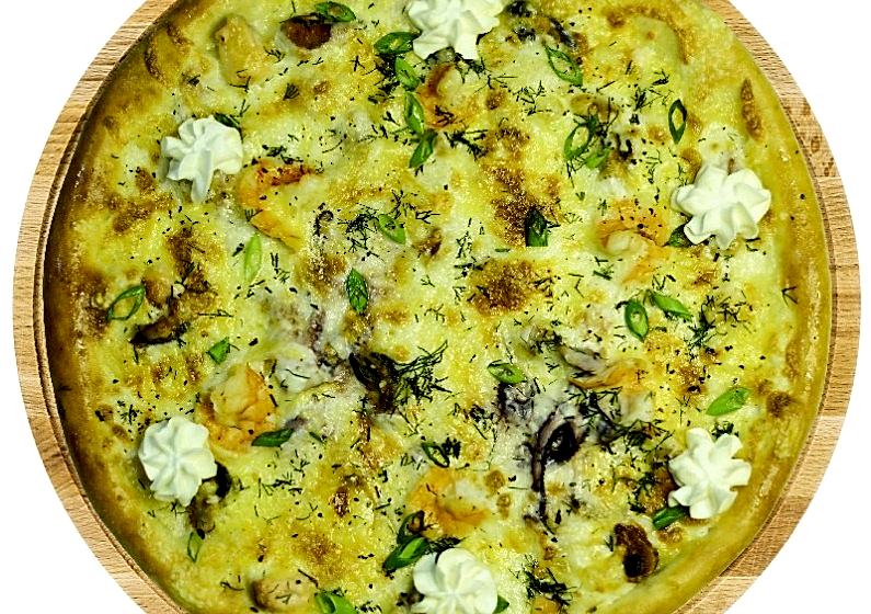 Копченый лосось, креветка, сливочный сыр, морской Pin-Up сливки, сыр Гауда, сыр Моцарелла