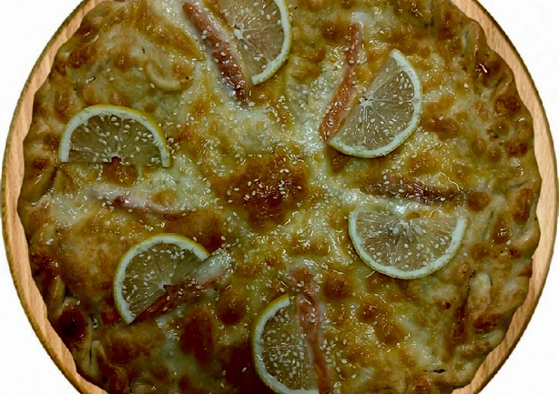 Морепродукты, филе Pin-Up креветка, белый соус, сыр Гауда, сыр Моцарелла, лимон, специи