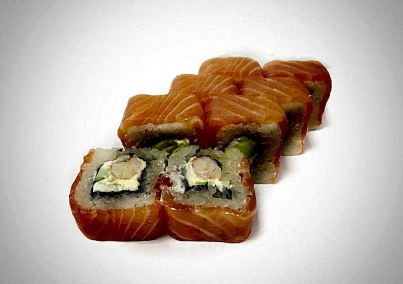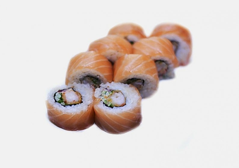 Рис, нори, лосось, сливочный сыр, белый соус ИМБИРЬ, ВАСАБИ и Pin-Up соус- прибретаются отдельно!!