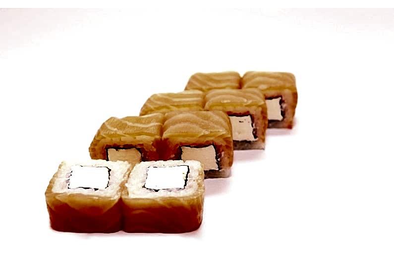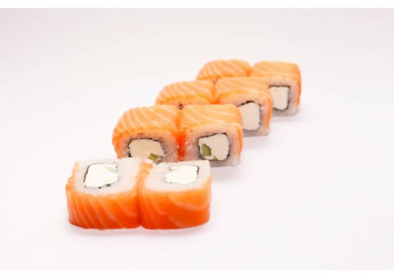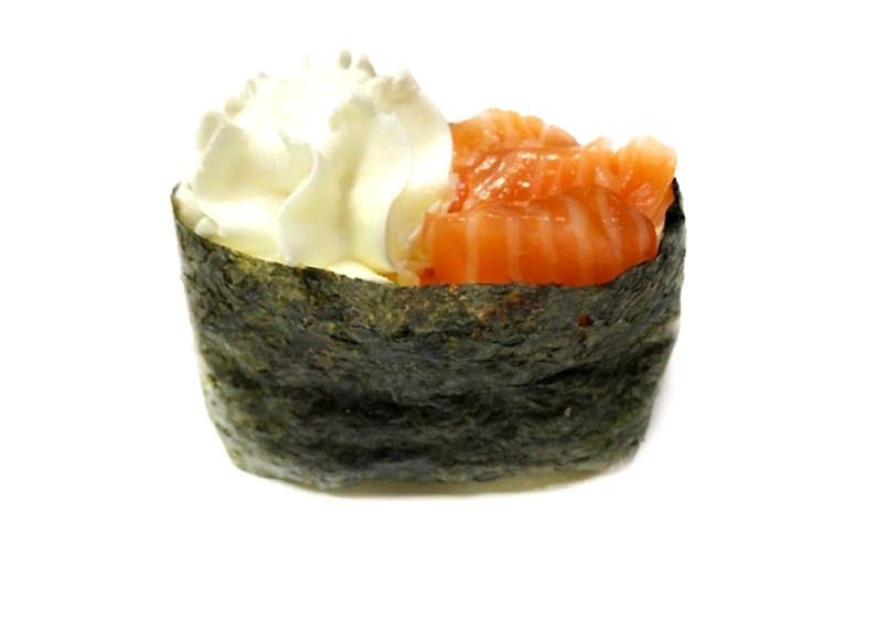 Лосось, сливочный сыр, рис, нори ИМБИРЬ, ВАСАБИ и СОЕВЫЙ соус- прибретаются отдельно!!