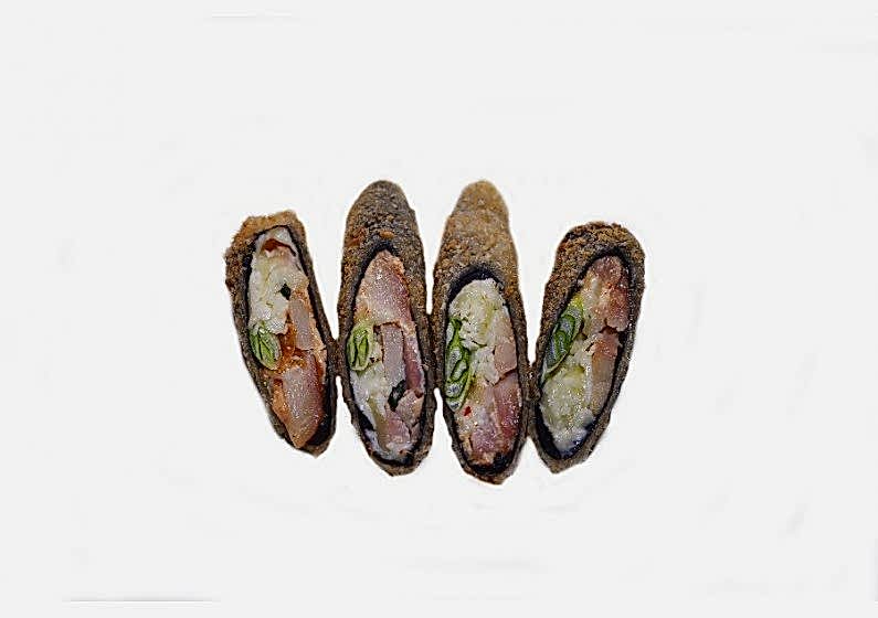 Бекон, майонез, Pin-Up болгарский, помидор, огурец, рис, нори ИМБИРЬ, ВАСАБИ и СОЕВЫЙ соус- прибретаются отдельно!!