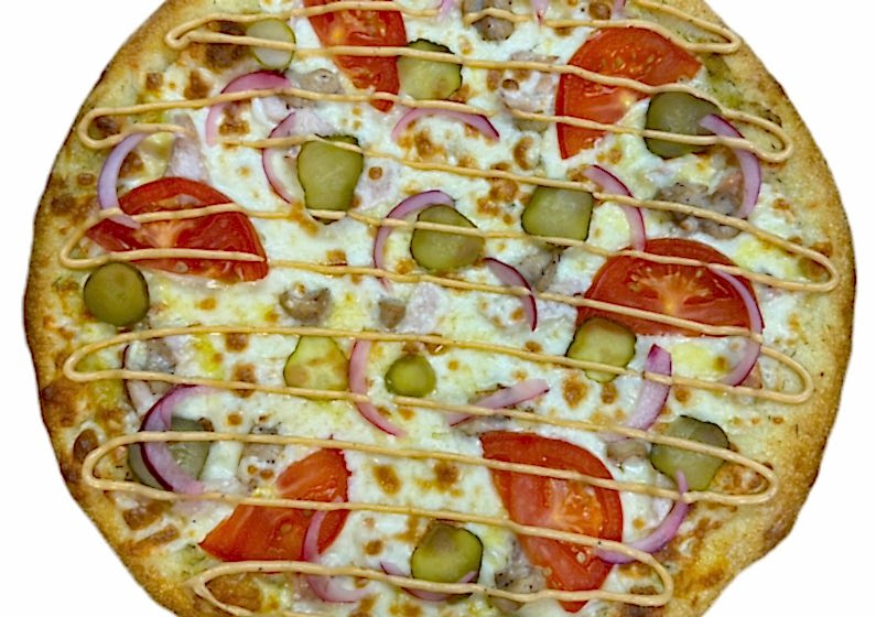 Бекон, куриное филе, пепперони, креветки, перец холопеньо, огурец маринованный, соус Pin-Up соус красный, соус Терияки, сыр Гауда, сыр Моцарелла