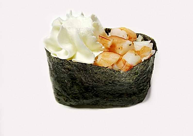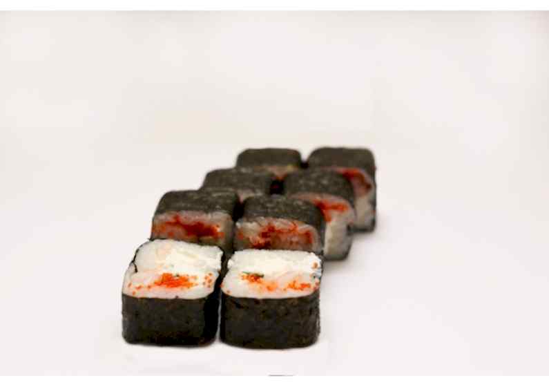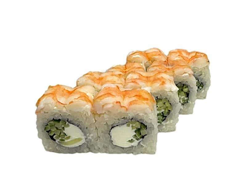 Креветка, икра Pin-Up сливочный сыр, огурец, рис, нори ИМБИРЬ, ВАСАБИ и СОЕВЫЙ соус- прибретаются отдельно!!