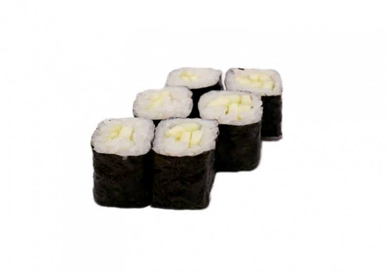 Pin-Up лосось, сливочный сыр, огурец, рис, нори ИМБИРЬ, ВАСАБИ и СОЕВЫЙ соус- прибретаются отдельно!!