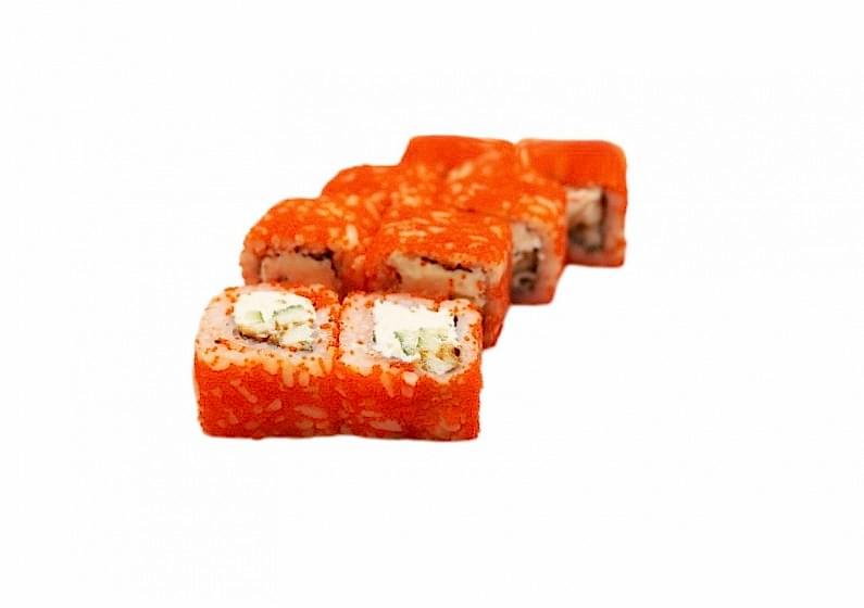 Угорь, Сливочный сыр, икра Масаго, огурец, рис, нори Pin-Up ВАСАБИ и СОЕВЫЙ соус- прибретаются отдельно!!