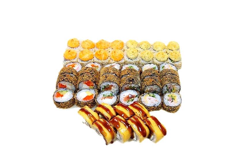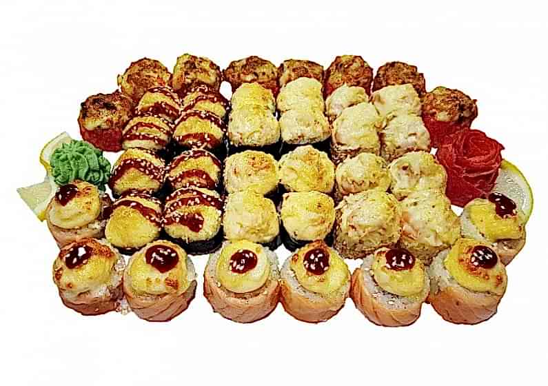 72 шт. Модза, Бонито, Филадельфия с авокадо, Pin-Up Тар-тар, Запеченная креветка, запеченный уорь, Чикен темпура, запеченный краб Упаковано - на 5 персон!!