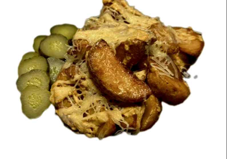 Картофельные дольки, Pin-Up Бургерный, сыр Пармезан, маринованный огурчик