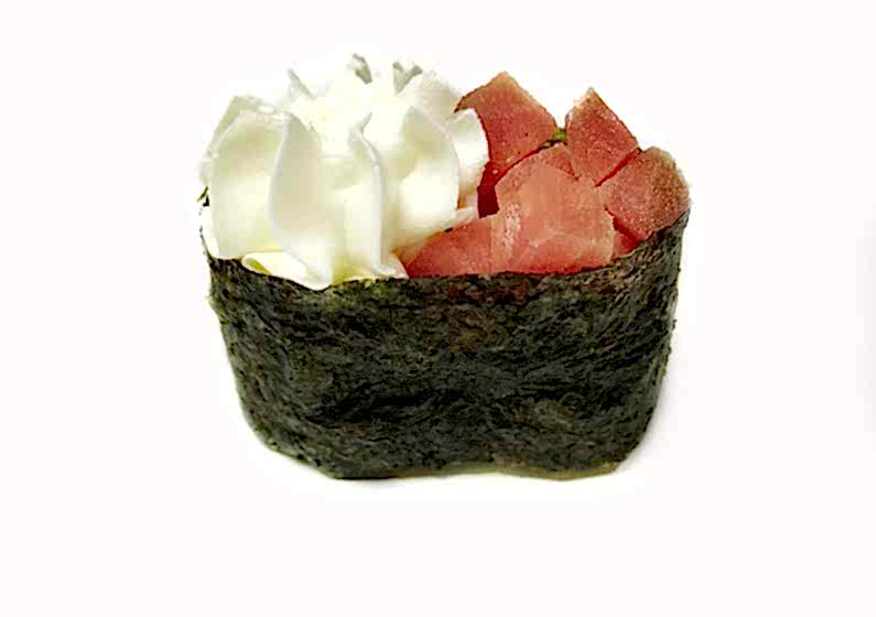 Рис, нори, тунец, сливочный сыр, белый соус ИМБИРЬ, ВАСАБИ и СОЕВЫЙ Pin-Up прибретаются отдельно!!